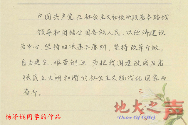 本次比赛以硬笔、软笔书法为主要形式,要求学生通过书写毛主席诗词、邓小平经典语录、习近平重要讲话等,以及“两学一做”基本知识、学生体悟等内容,抒发对党和国家的深厚情感。经评比,本科生第六党支部雷雯、2015级硕士第二党支部甘元亮的作品获一等奖,本科生第四党支部韦立花、本科生第十二党支部杨泽娴、本科生第一党支部郭任、本科生第三党支部邱中航的作品获二等奖,本科生第一党支部周弋荃、本科生第三党支部赵薇、本科生第十二党支部杨鑫、本科生第十党支部林豪、本科生第十二党支部孙雅茹、本科生第十党支部霍佳媛的作品获三等奖。